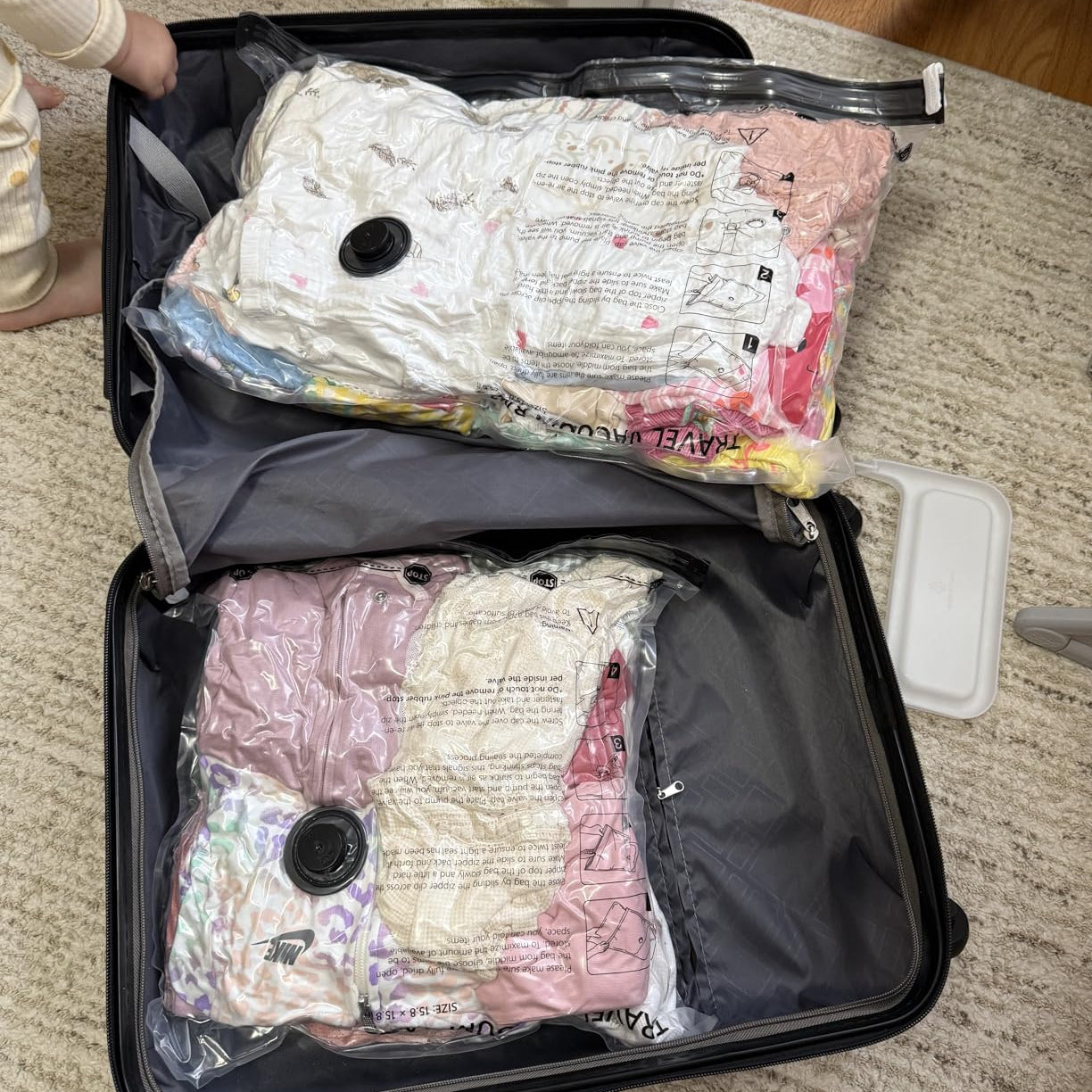 Paired with the AeroSqueeze vacuum, you get a consistent, deep compression that preserves fabric quality while keeping everything neatly packed for weeks. Durable, reusable, and built for real travel — this system keeps your clothes protected as well as compressed.